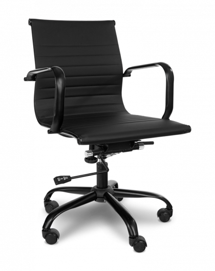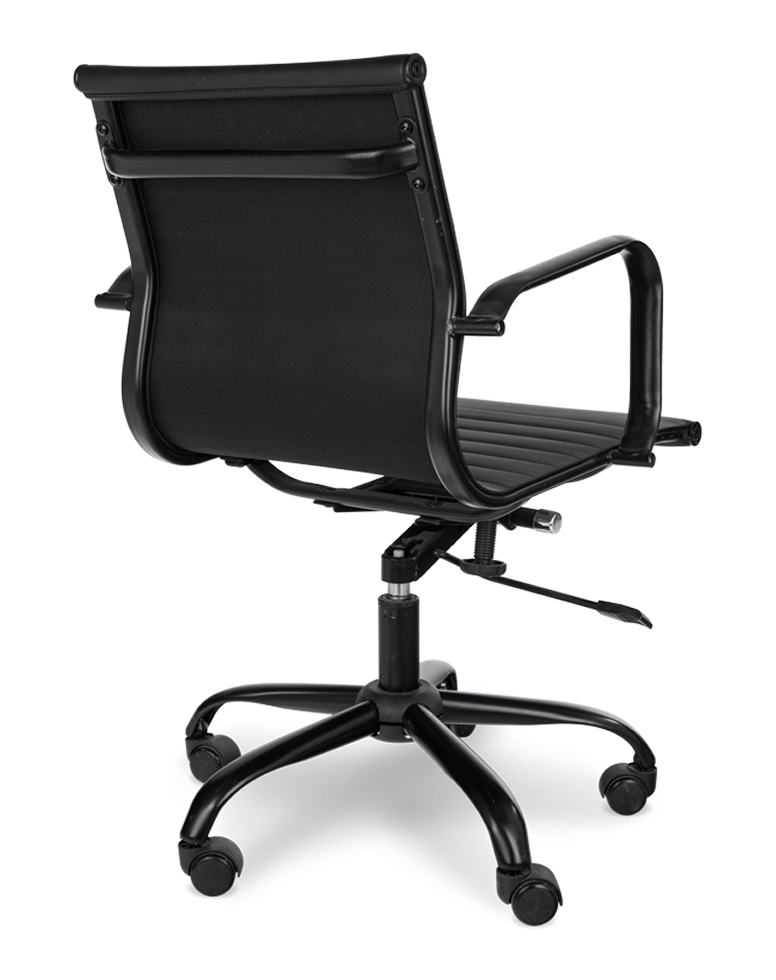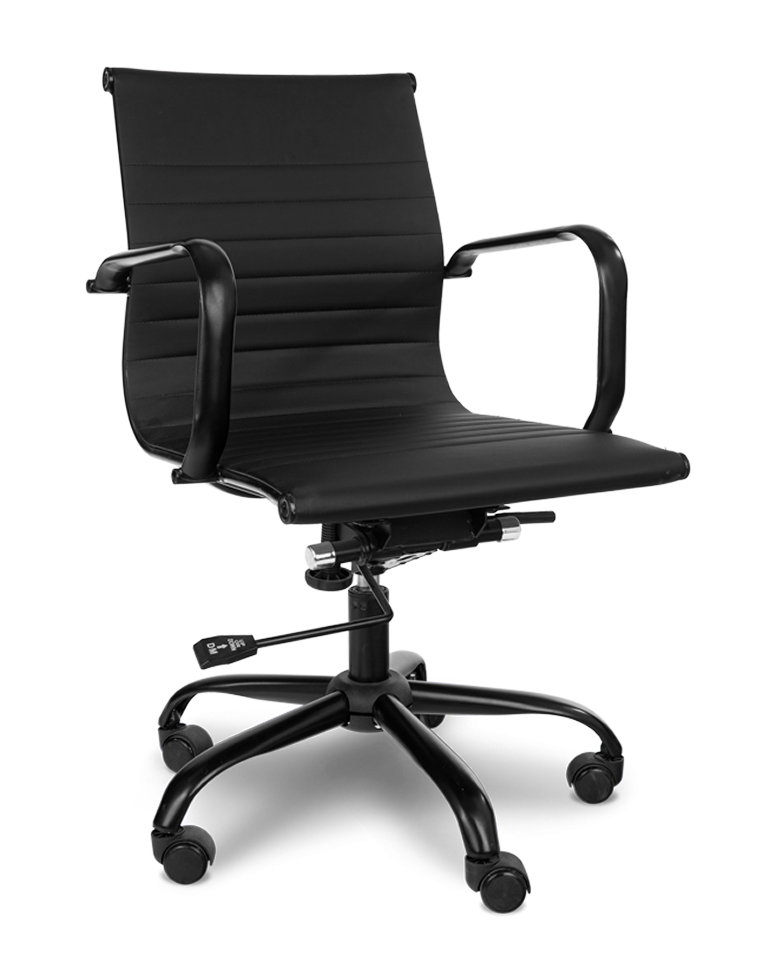 • מושב עשוי בד דמוי עור שחור הכולל משענת גב בגובה בינוני בעל מראה חלק ואלגנטי, גמיש ועמיד